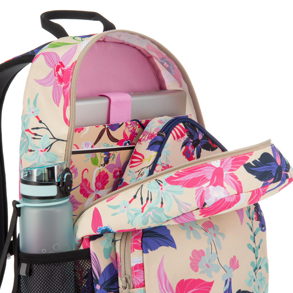 Praktikus, nagy méretű hátizsák trópusi virágmintával. Ebben a hátizsákban minden tanszer megtalálja a helyét! Nagy rekeszében bélelt laptoptartó, első zsebében jól elfér a kisebb tanszerek és kiegészítők. - 3 ÉV garanciával!
