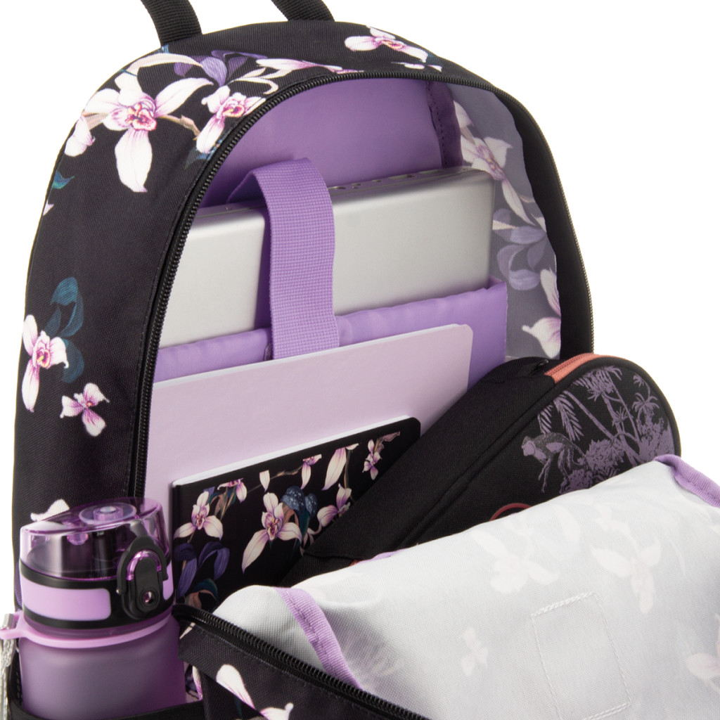 Praktikus, nagy méretű hátizsák romantikus virágmintával. Ebben a hátizsákban minden tanszer megtalálja a helyét! Nagy rekeszében bélelt laptoptartó, első zsebében jól elfér a kisebb tanszerek és kiegészítők. - 3 ÉV garanciával!