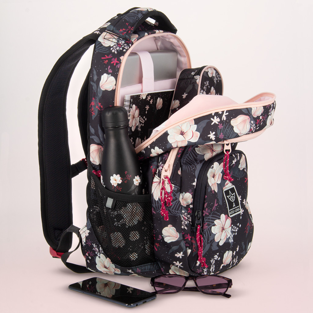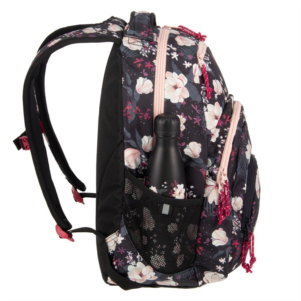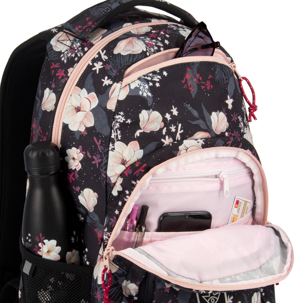 Praktikus hátizsák lányoknak, vidám virágmintával. - Ebben a hátizsákban minden tanszer megtalálja a helyét, számos rekeszében pedig külön zsebet kap napszemüveged, laptopod és kulacsod is!