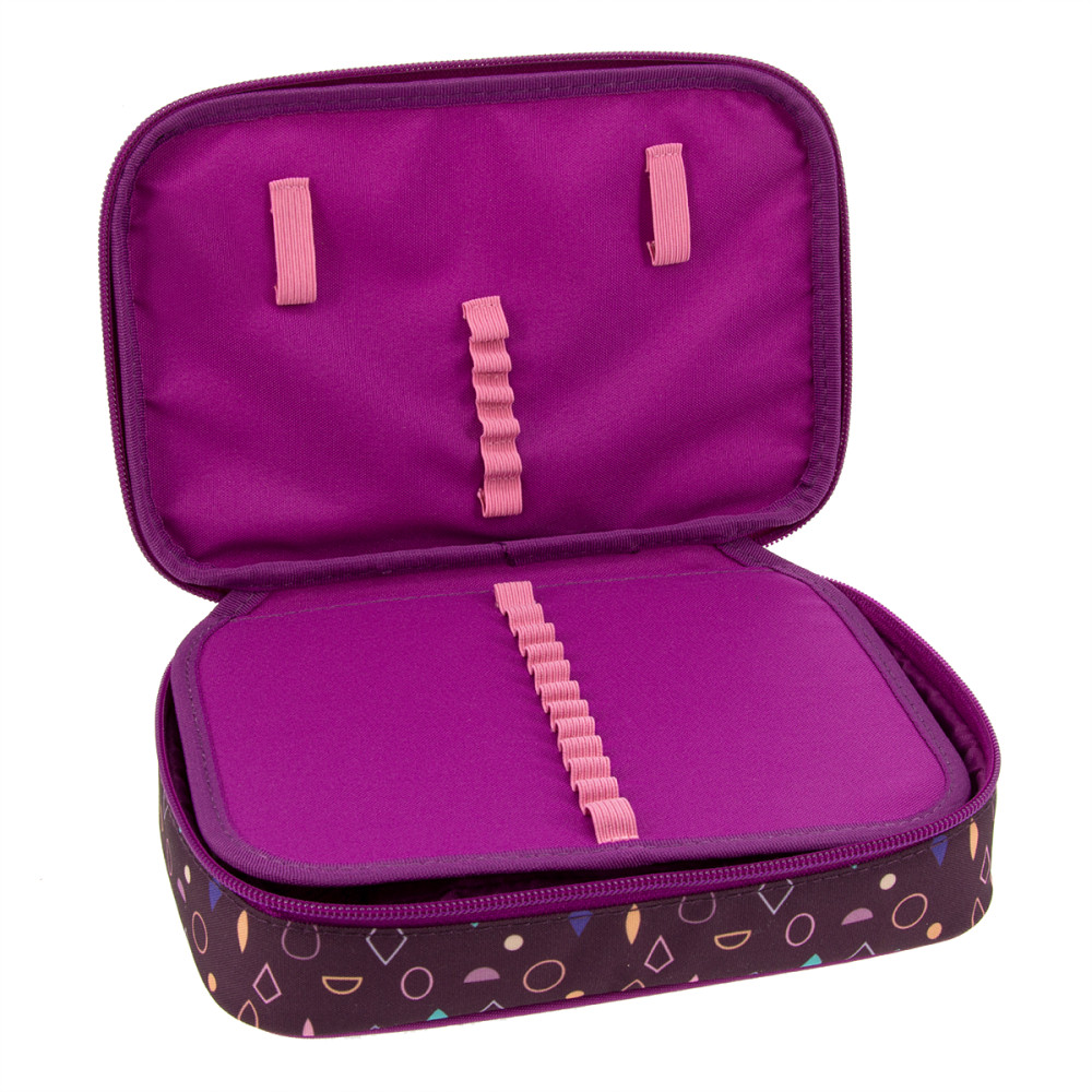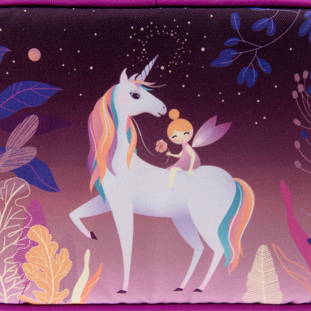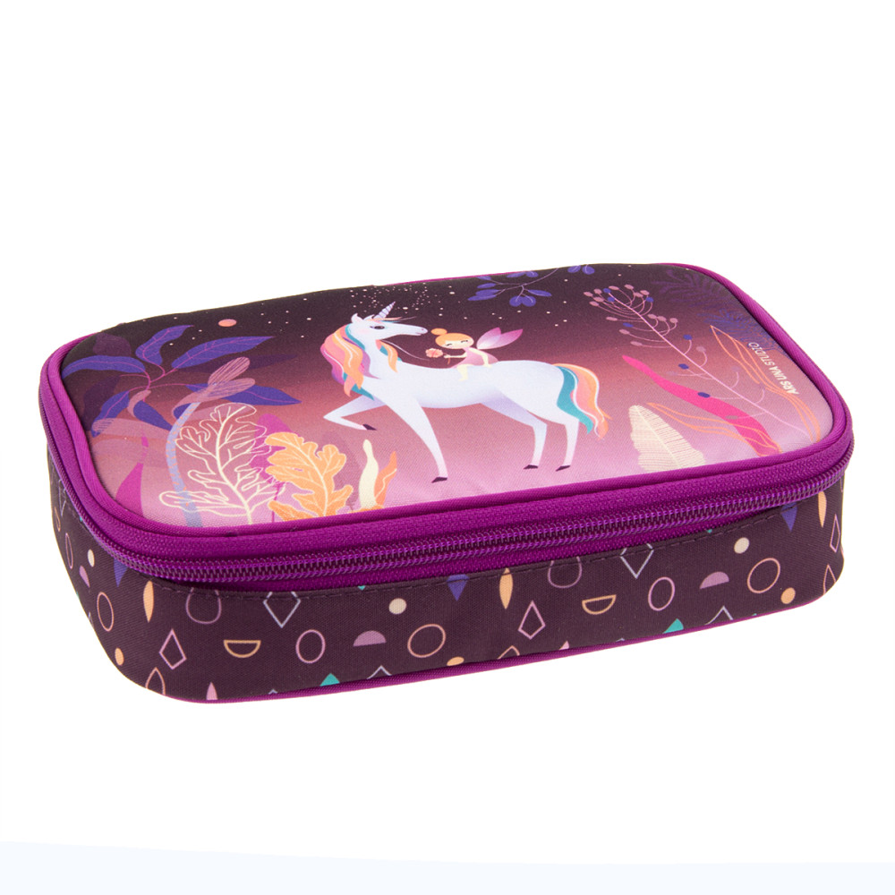 Szép egyszarvús mintával díszítettük ezt a klassz tolltartót, amelyet alsós lányoknak ajánlunk. Belsejében a hagyományos írószertartók mellett plusz zsebet is elhelyeztünk a kiegészítő írószerek és kincsek számára.