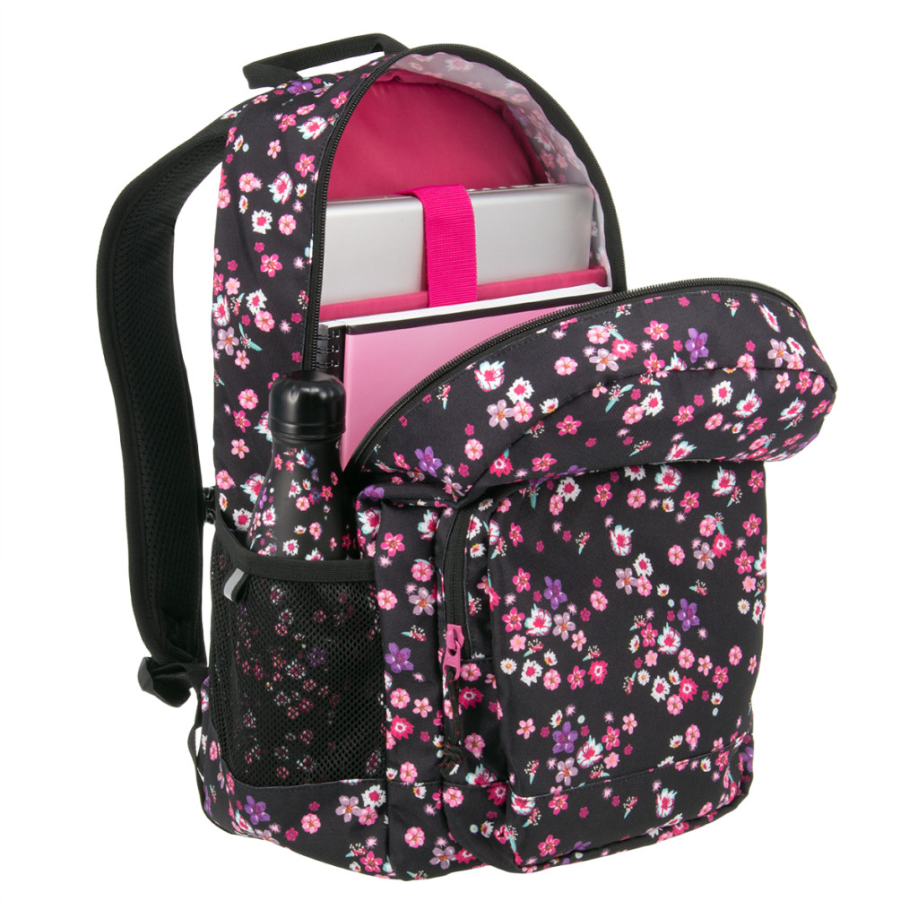 Praktikus, nagy méretű hátizsák romantikus virágmintával. Ebben a hátizsákban minden tanszer megtalálja a helyét! Nagy rekeszében bélelt laptoptartó, első zsebében jól elfér a kisebb tanszerek és kiegészítők. - 3 ÉV garanciával!