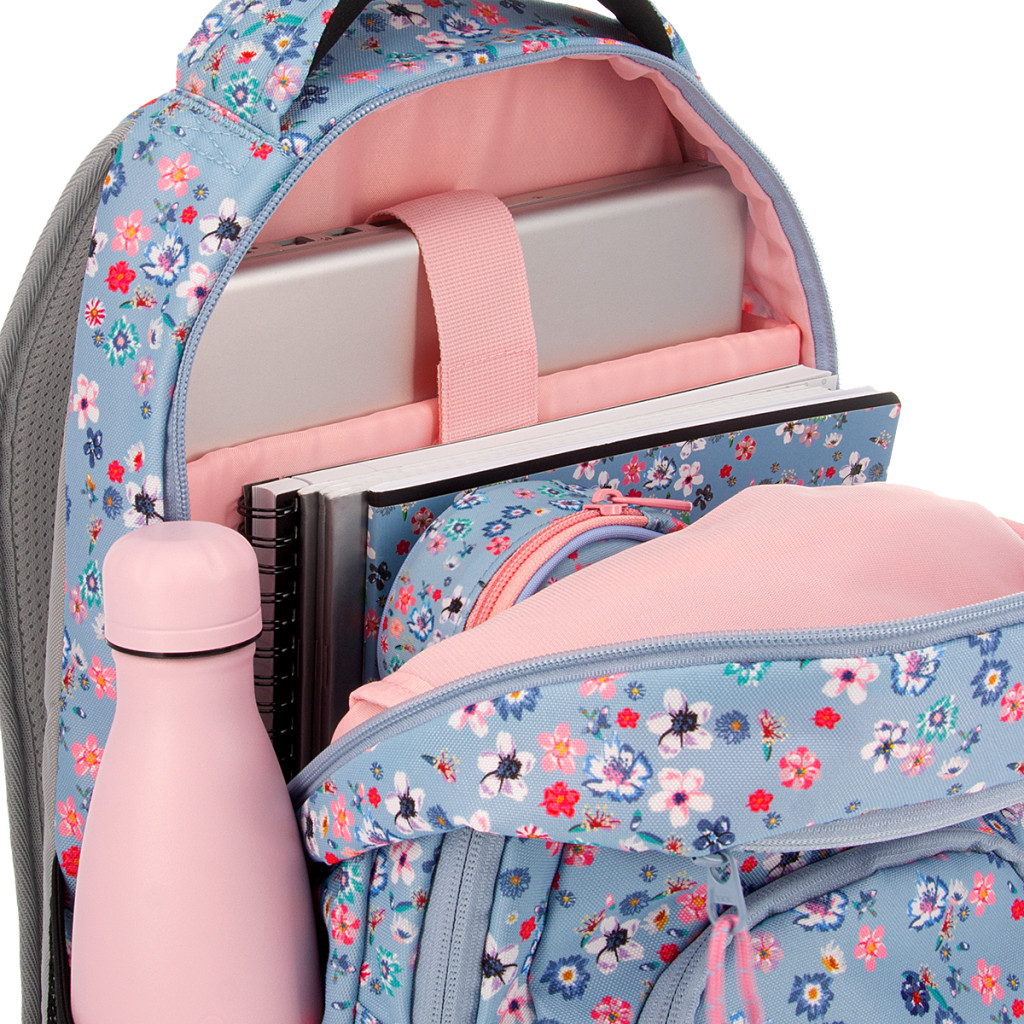 Praktikus hátizsák lányoknak, vidám virágmintával. - Ebben a hátizsákban minden tanszer megtalálja a helyét, számos rekeszében pedig külön zsebet kap napszemüveged, laptopod és kulacsod is!