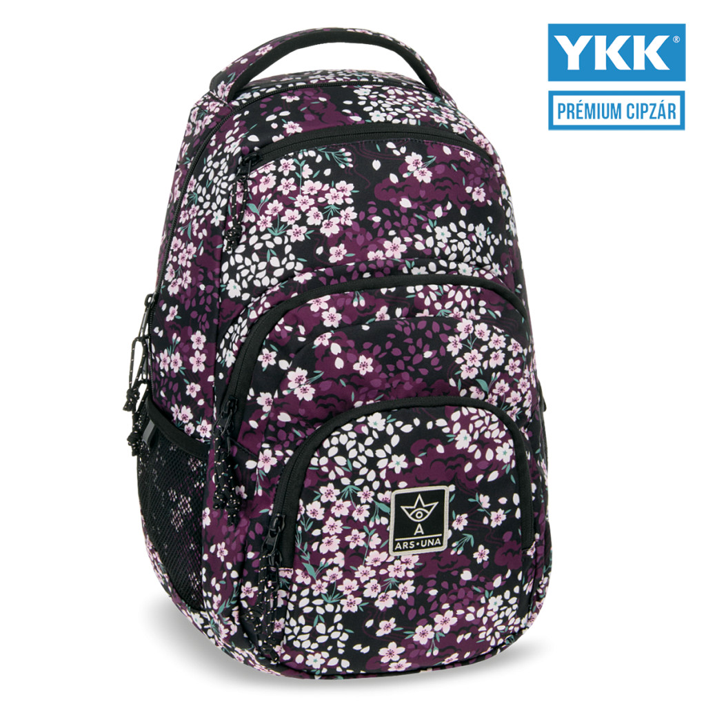 Praktikus hátizsák lányoknak, cseresznyevirágos mintával. - Ebben a hátizsákban minden tanszer megtalálja a helyét, számos rekeszében pedig külön zsebet kap napszemüveged, laptopod és kulacsod is!