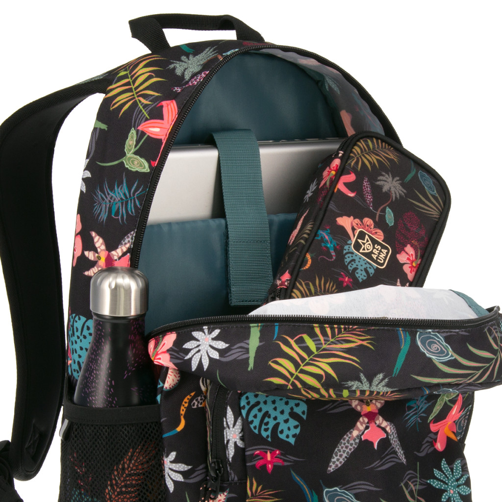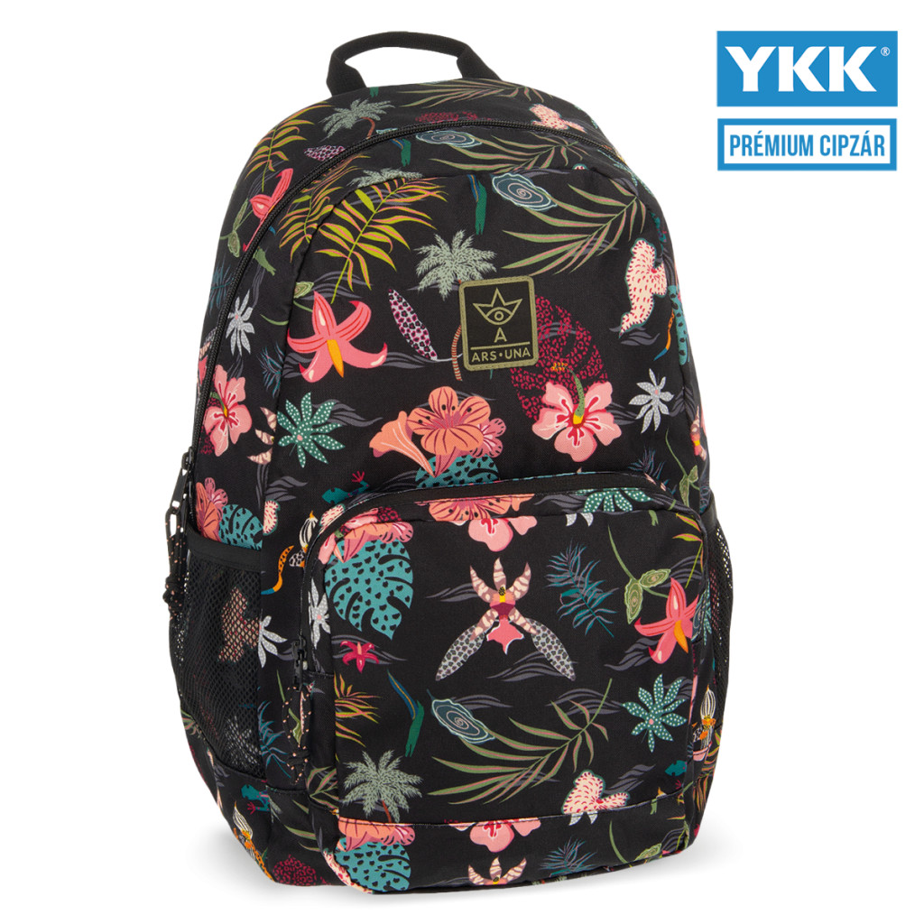 Praktikus, nagy méretű hátizsák trópusi virágmintával. Ebben a hátizsákban minden tanszer megtalálja a helyét! Nagy rekeszében bélelt laptoptartó, első zsebében jól elfér a kisebb tanszerek és kiegészítők. - 3 ÉV garanciával!