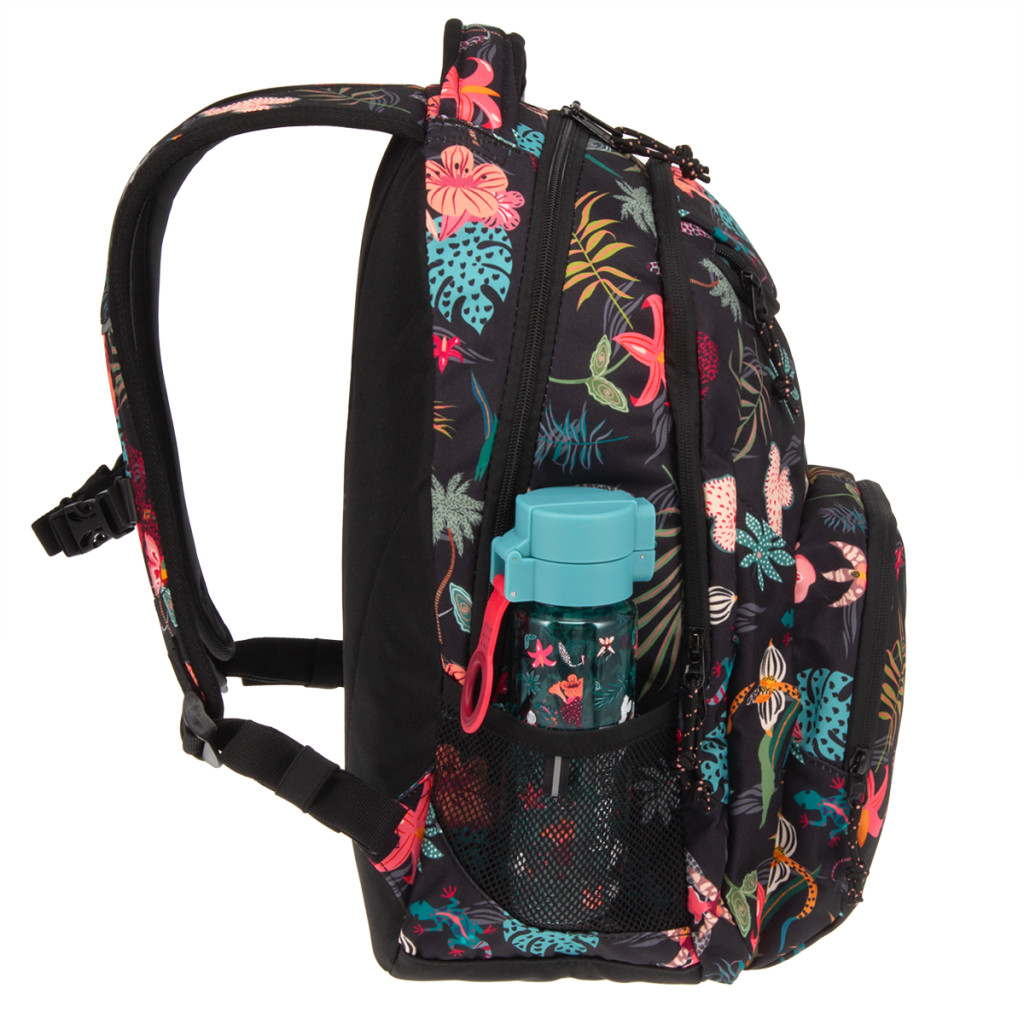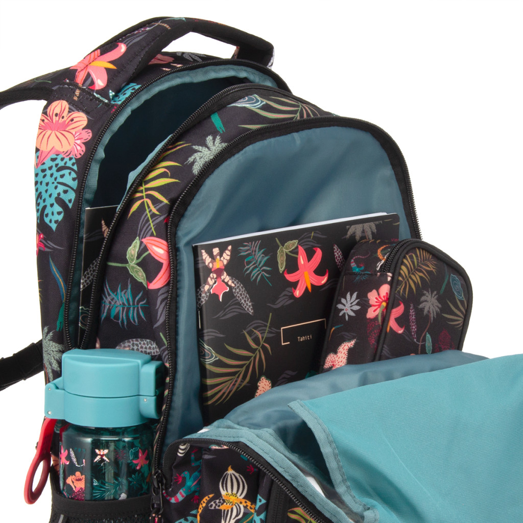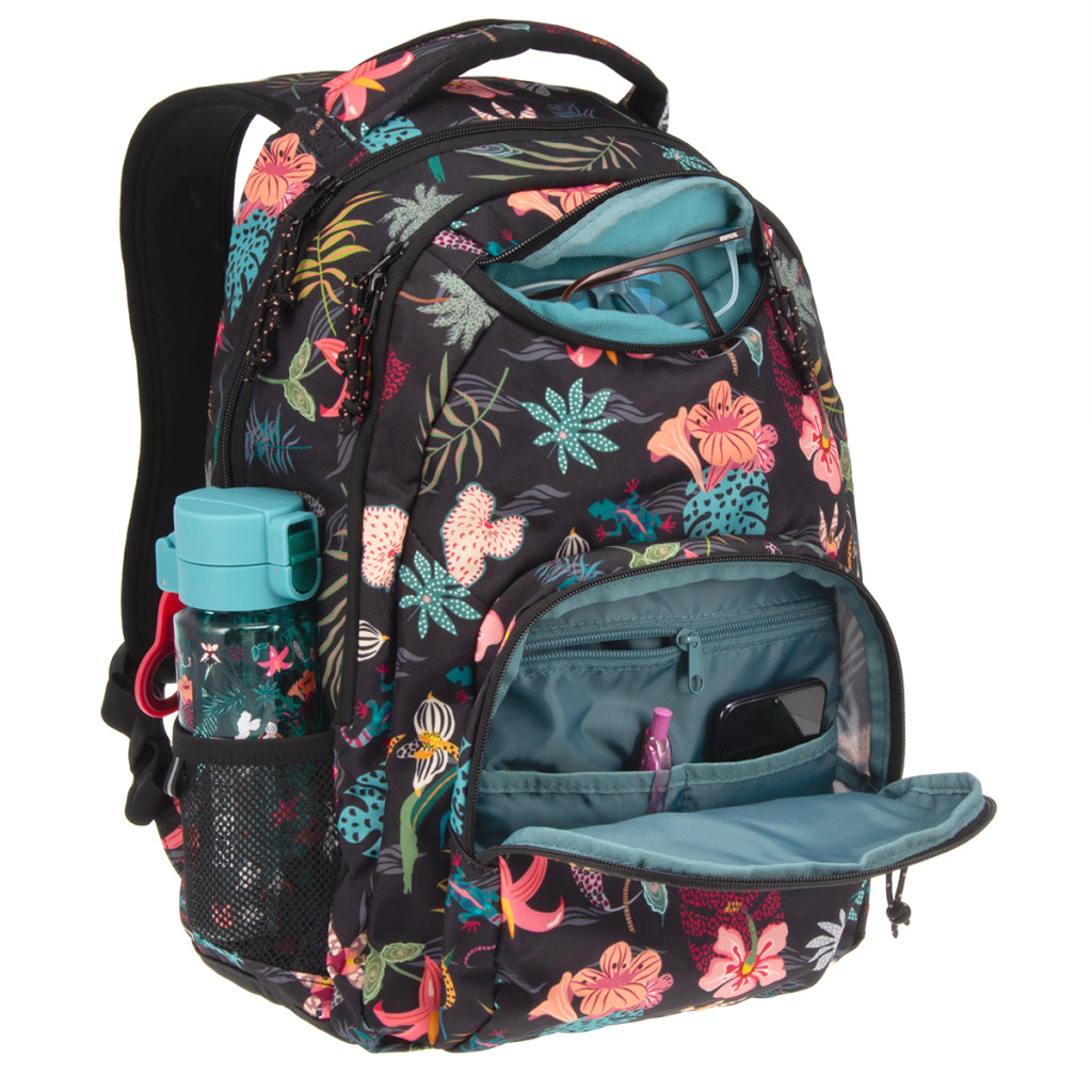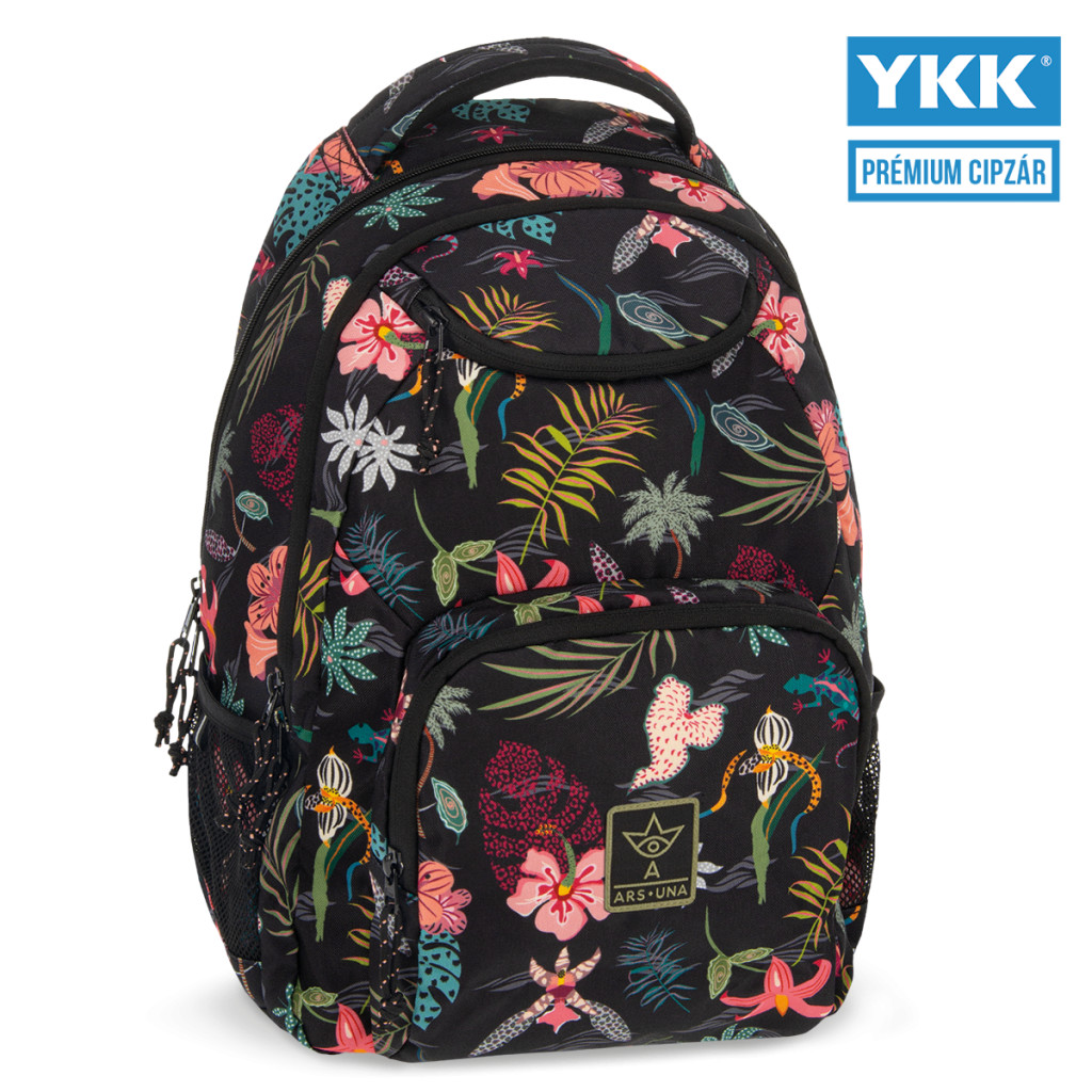 Jól rendszerezhető hátizsák középiskolás lányoknak trópusi virágmintával - Praktikus rekeszeiben minden tanszer megtalálja a helyét, ráadásul saját zsebet kap benne napszemüveged, kulacsod és minden apróbb felszerelés is. - Tartós, strapabíró, kényelmes - prémium minőségű YKK cipzárakkal, 3 ÉV GARANCIÁVAL!