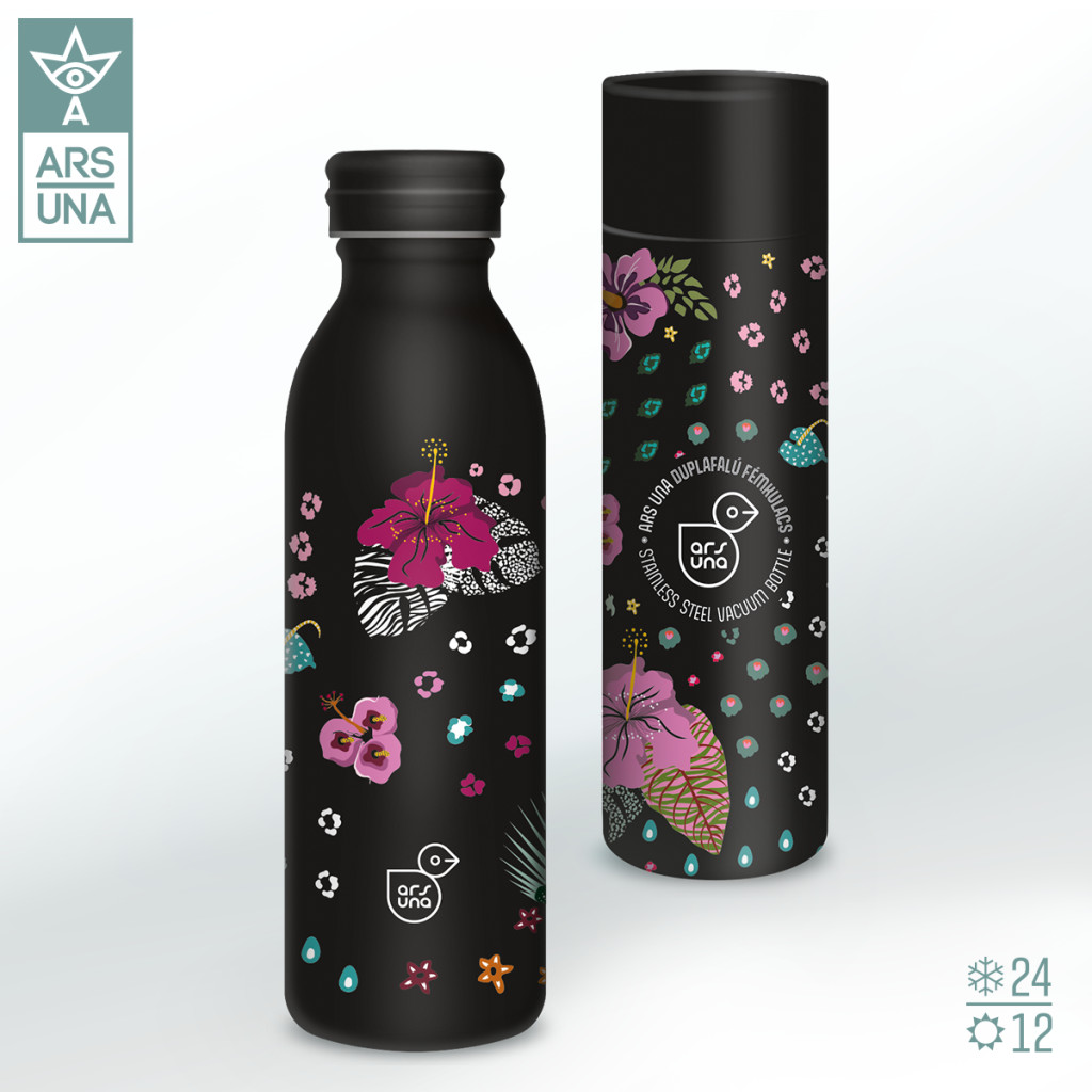 Ars Una 600 ml duplafalú fémkulacs szép virágmintával - 12 órán át melegen, 24 órán át hidegen tartja a benne tárolt innivalót. Cseppmentesen zárható. Vidd magaddal minden nap és JÁRJ VELÜNK ZÖLD ÚTON! - Töltsd újra kulacsodat és spórolj meg naponta legalább egy eldobható palackot!